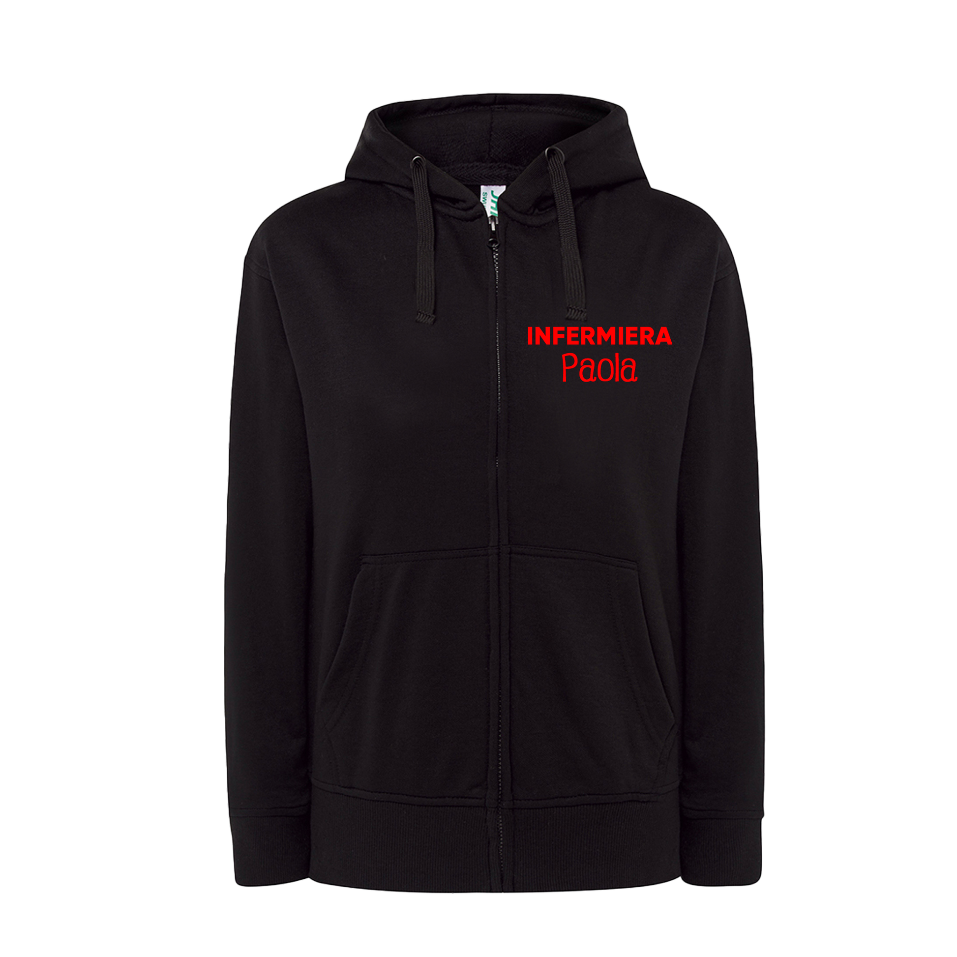 Felpa Zip e Cappuccio INFERMIERA con nome - Rosso