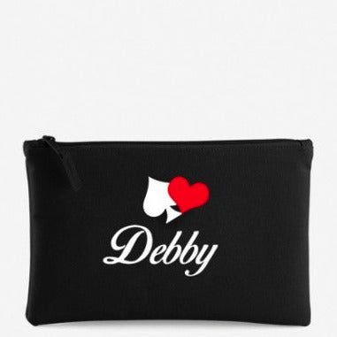 Pochette in tessuto personalizzabile con le proprie iniziali. Perfetta per iPad mini/tablet, compartimento principale regolabile con zip.