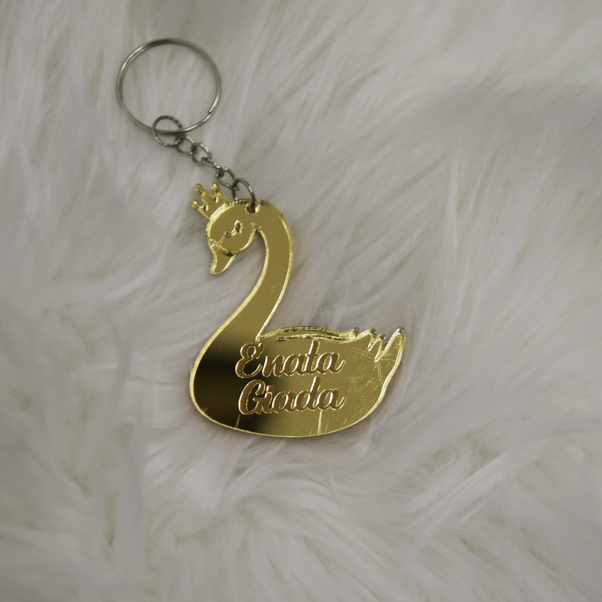 🦢 Portachiavi Cigno Personalizzato – Plexiglass Specchio Oro