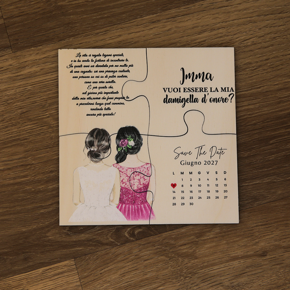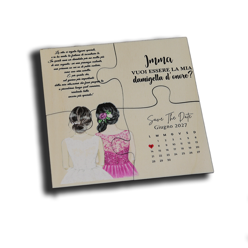Targa Puzzle in Legno Personalizzabile – Proposta Speciale per Testimoni, Damigelle, Madrine e Padrini